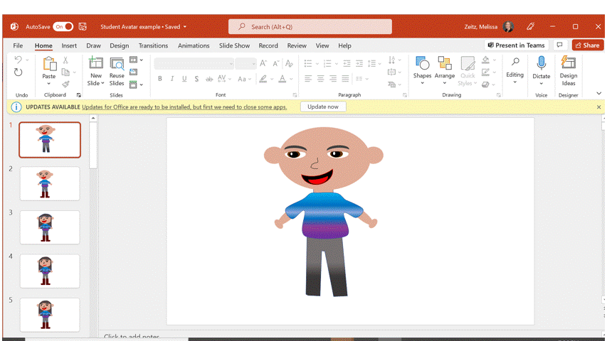 Model for students how to change one piece of an avatar on each slide to create a GIF.