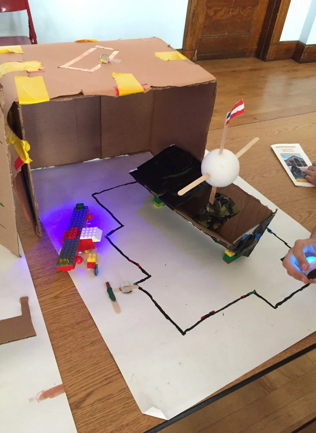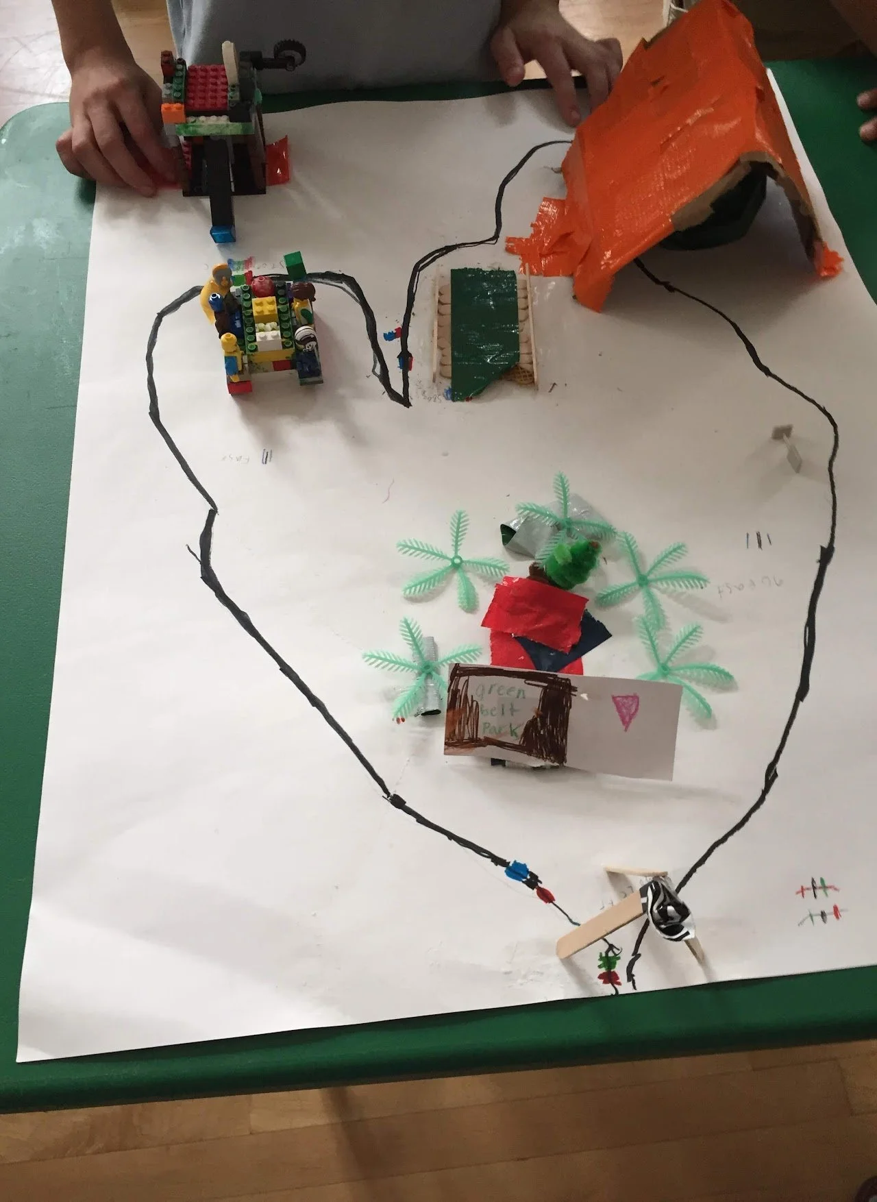 When the entire project was built they were able to check out the markers and draw out their Ozobot course. The students were required to use at least three codes and they had to interact with each of the different spots on their map. When they were done they were able to try it out with the Ozobot.