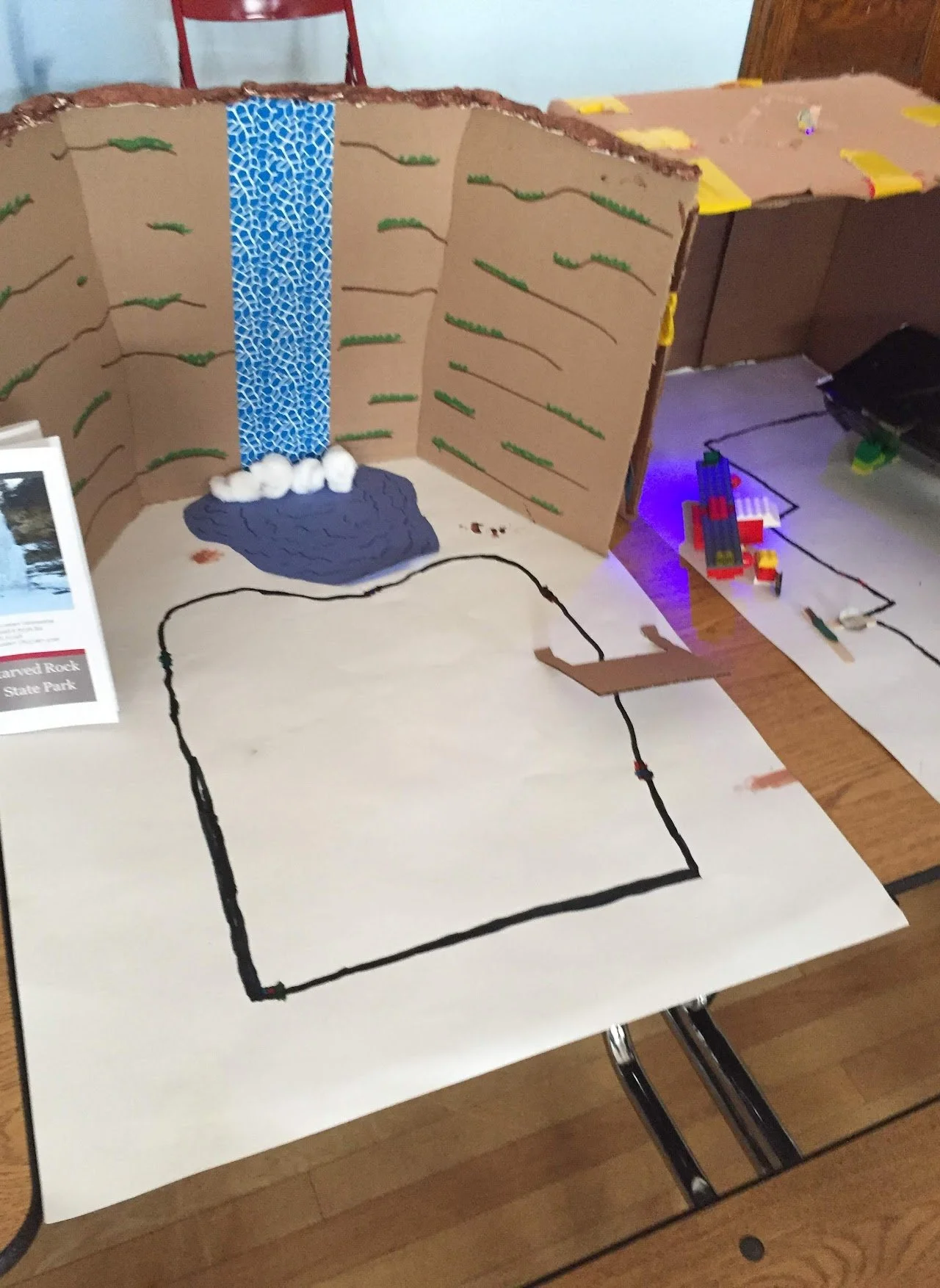 It took several days for them to build all of the pieces. They were not given the white poster board at first. They needed to build free standing pieces first.